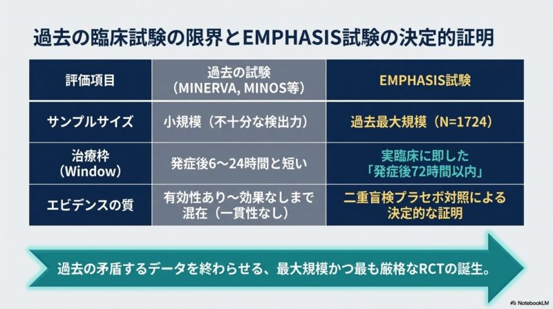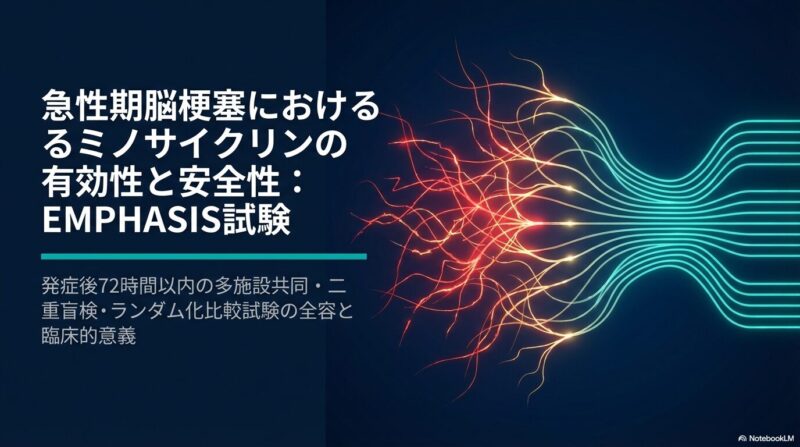 脳卒中治療の進歩にもかかわらず、急性期の神経炎症は予後悪化の大きな要因です。EMPHASIS試験では、安価なテトラサイクリン系抗菌薬であるミノサイクリン(minocycline)が、急性虚血性脳卒中患者の機能予後を改善するかを検証した、中国の58施設による大規模な第3相ランダム化比較試験です。