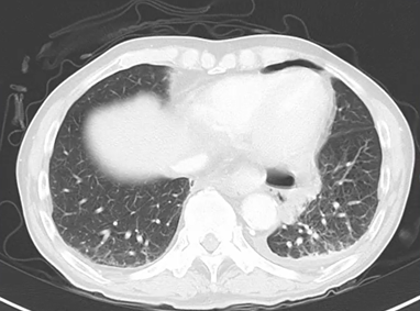 左胸痛が続くため造影CT施行。