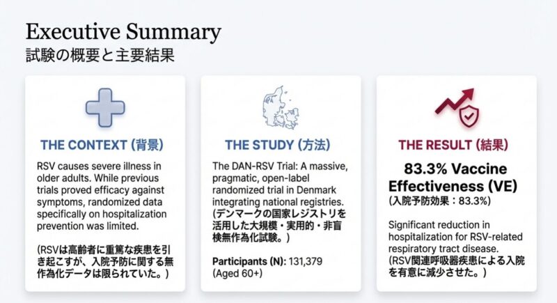 高齢者におけるRSVによる入院予防のためのRSV融合前Fタンパク質ワクチンの効果:DAN-RSV実用的無作為化試験の解析)