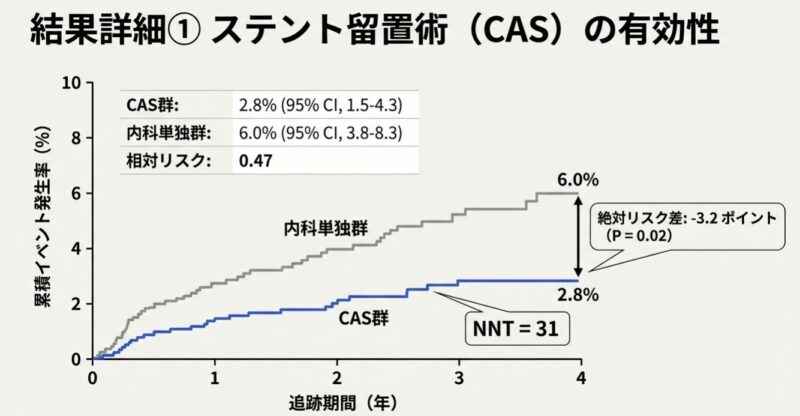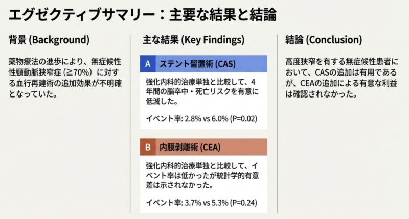 無症候性頸動脈狭窄症に対する血行再建術と内科的治療の比較