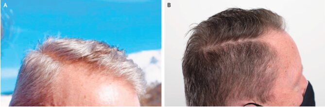 その間、患者は白髪が徐々に再色素沈着して元の色に戻っていることに気づいた。