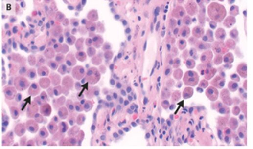 気管支肺胞洗浄では診断はつかず、外科的肺生検が施行された。