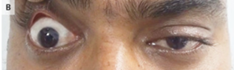 神経学的所見としては、両側の目の外転と内転制限、および右眼瞼下垂が顕著であった。