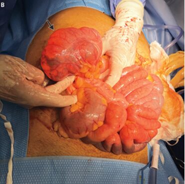 入手可能な臨床データに基づいて患者は手術室に運ばれ開腹手術が施行された。