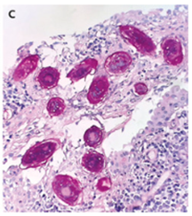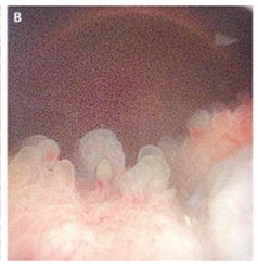 膀胱生検も施行され、多数の住血吸虫卵、急性および慢性の乳頭状膀胱炎およびポリープ状膀胱炎が認められ、異形成は認められなかった。