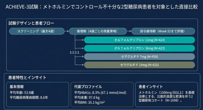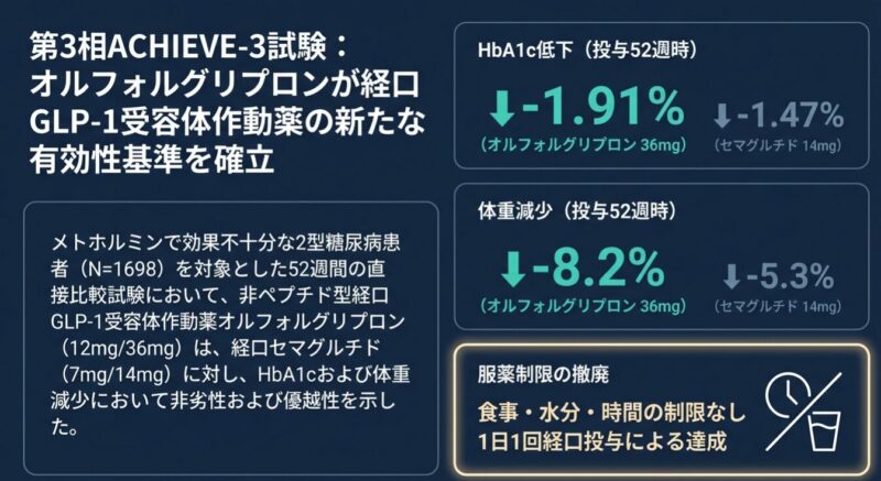 経口GLP-1受容体作動薬オルフォルグリプロンの有効性と安全性:2型糖尿病患者を対象としたACHIEVE-3試験の結果