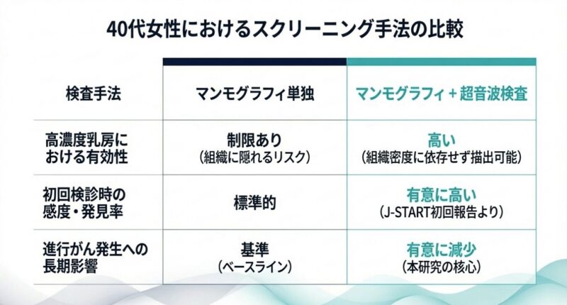 40代女性の乳がん検診における超音波併用の効果:J-START試験による進行がん抑制のエビデンス