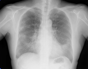 正常な構造物と病変の境界が見えなくなる「シルエットサイン」陽性となることもあります。
