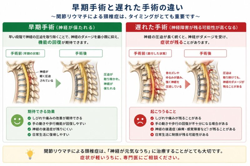 【見逃すと危険】関節リウマチによる首の病気(頚椎症)と早期手術の重要性