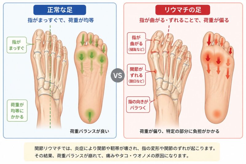 関節リウマチは手だけでなく、足にも非常に多く症状が出る病気です。