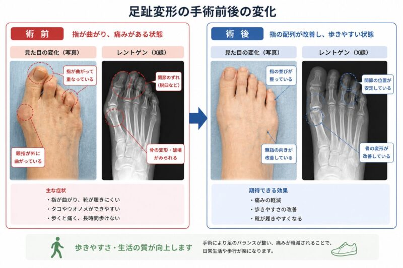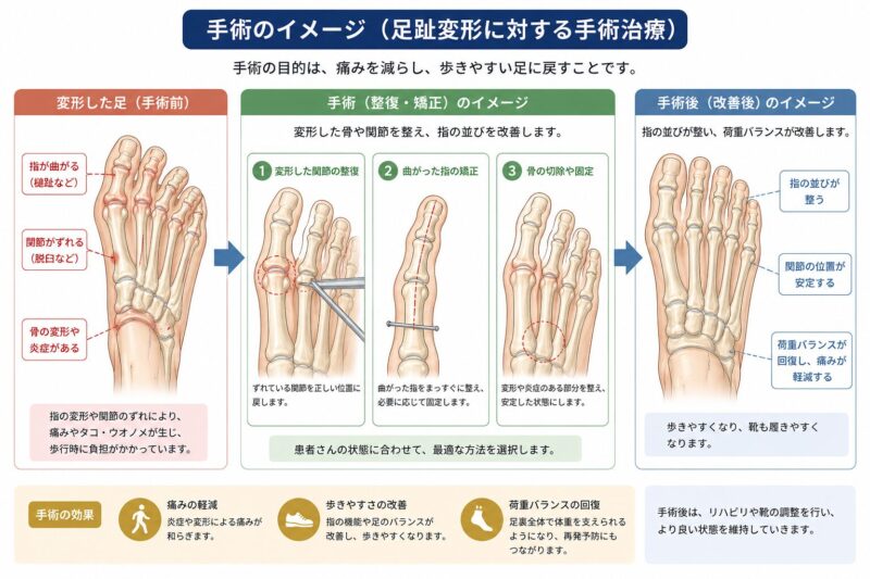 手術の目的はシンプルです。「痛みを減らし、歩ける足に戻すこと」