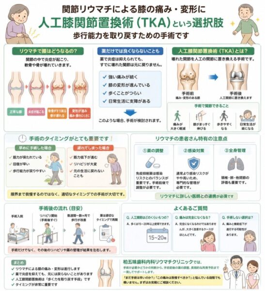 関節リウマチで膝が痛い・変形している方へ:人工膝関節置換術(TKA)という選択肢について