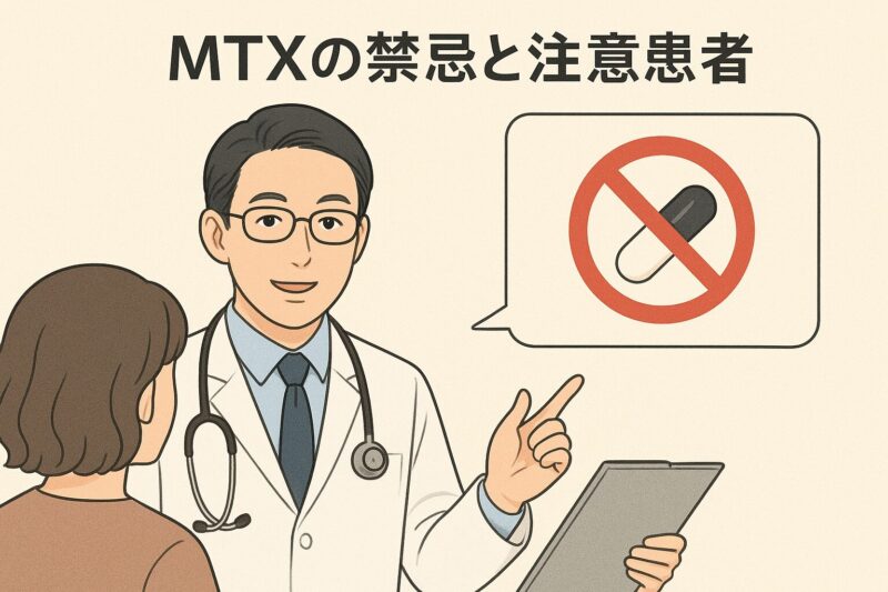 ・間質性肺炎/肺線維症などの肺障害のある患者:禁忌ではないですが、間質性肺疾患自体がMTXの重大な副作用の一つであり、特に注意が必要です。
