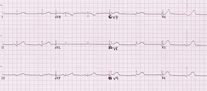 →V7~V9貼ってみるのもよい(後壁梗塞を正面からとらえた心電図ということになる)